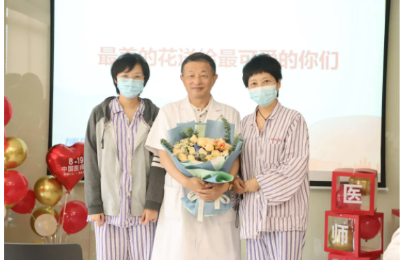 高博醫學(血液?。┥虾Q芯恐行淖o理部總監葉國芬、副總監劉敏慧為在場每位醫生親手送上鮮花,感謝醫生們的辛勤工作與無私奉獻,并致以節日的祝賀和誠摯的問候。