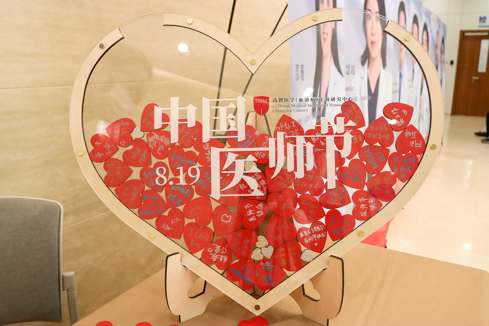 8月19日一大早,在高博醫學(血液病)上海研究中心上海閘新醫院和上海力泉醫院的大廳里,正舉辦著一場“我要說聲謝謝你”為主題的愛心留言活動。患者、患者家屬、醫務工作者紛紛留言,大家用真摯的話語、暖心的祝福留下想對醫生說的話,表達著對醫生的感激與敬意。